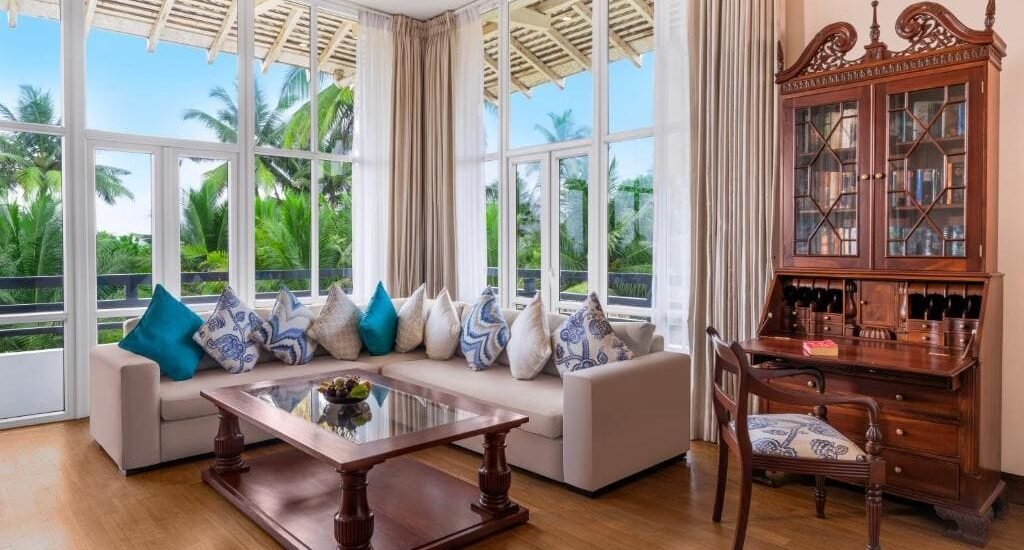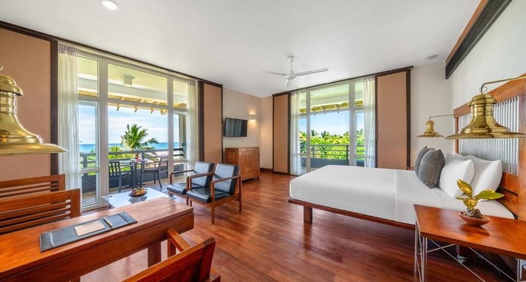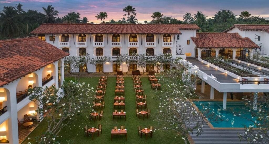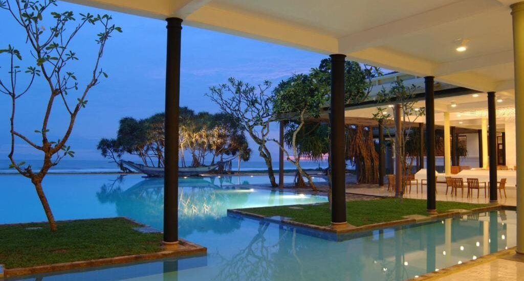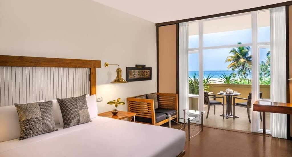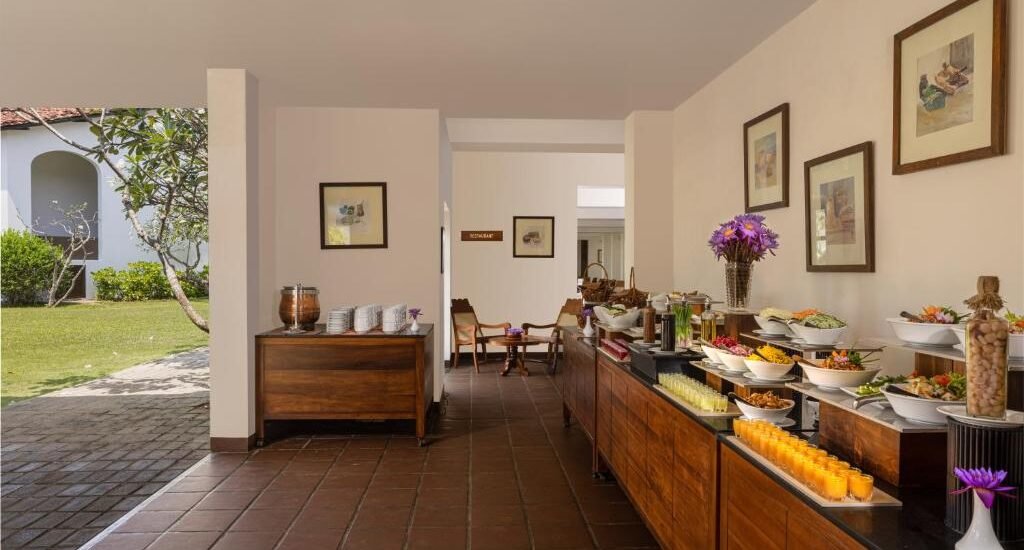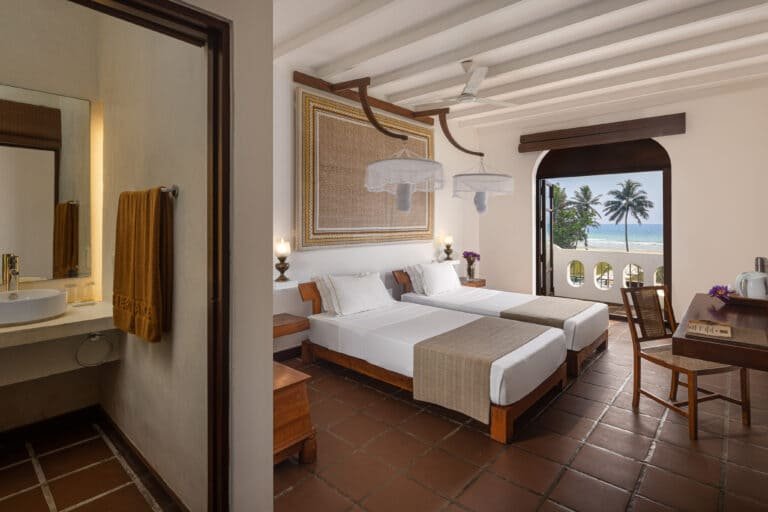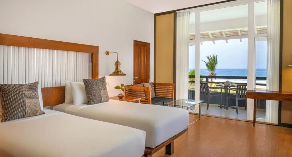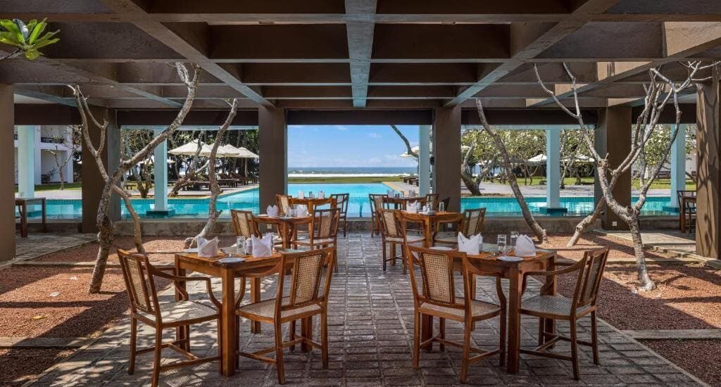 Dining covers a mix of Sri Lankan and European flavour come evening, with pizzeria for midday light bites and a beach bar for sunset cocktails.