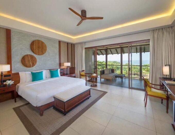 Anantara Kalutara Resort is a stylish beachfront sanctuary set amid towering palms where the Kalu Ganga River flows into the Indian Ocean. Designed in the iconic Geoffrey Bawa architectural tradition, the resort features 141 beautifully appointed rooms, suites, and pool villas with panoramic ocean and lagoon views.